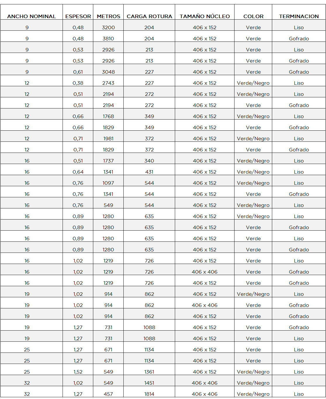 Hay disponibles flejes y embalajes de poliéster de tamanos personalizados. Por favor, póngase en contacto con su representante de ventas para obtener más detalles.