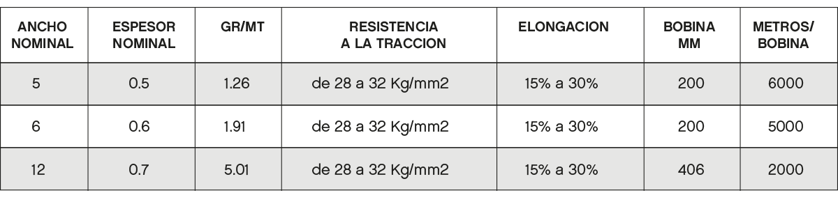 Hay disponibles flejes y embalajes de poliéster de tamanos personalizados. Por favor, póngase en contacto con su representante de ventas para obtener más detalles.